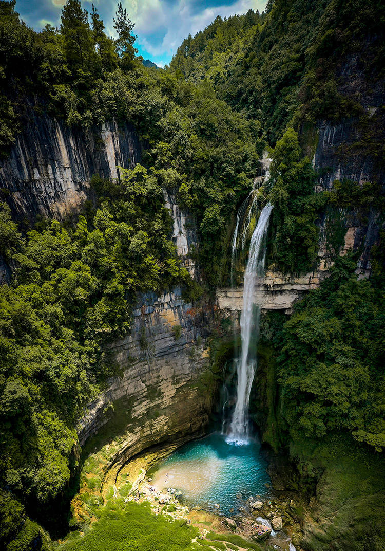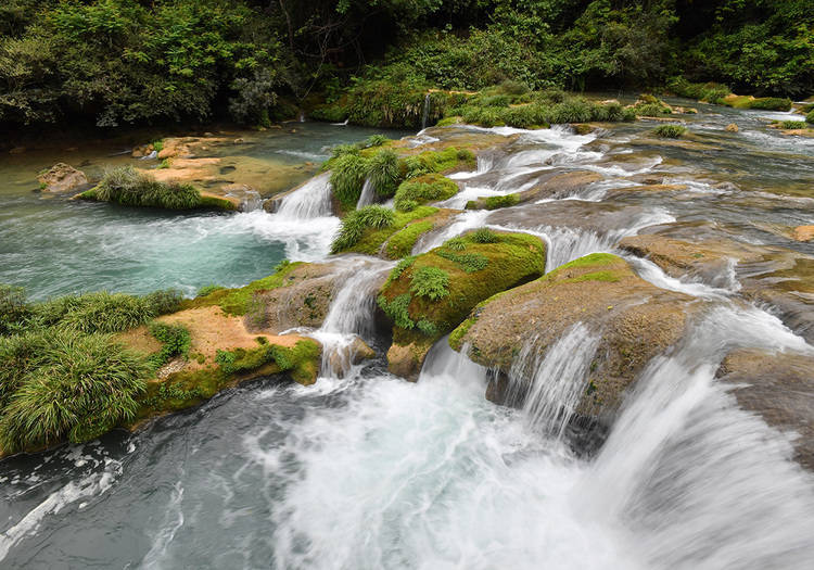 荔波小七孔68级跌水瀑布,错落在涵碧潭上游长1.6公里狭窄山谷。@摄影师 乔啟明