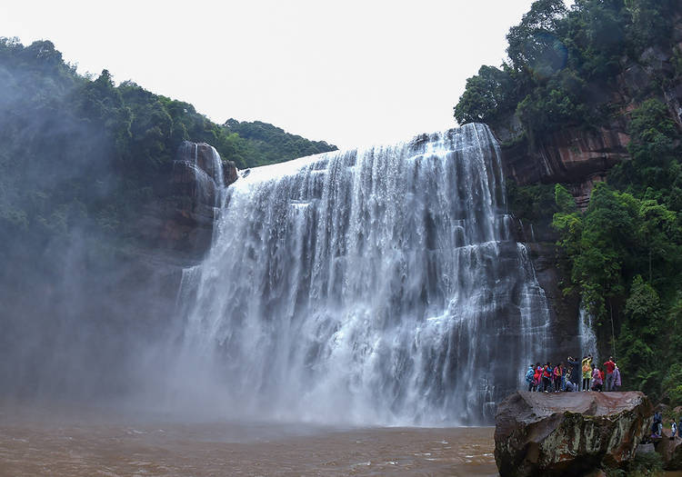 “仰首天河出石濠。”赤水大瀑布高76米,宽80米,是“赤水丹霞”世界自然遗产的核心组成部分。