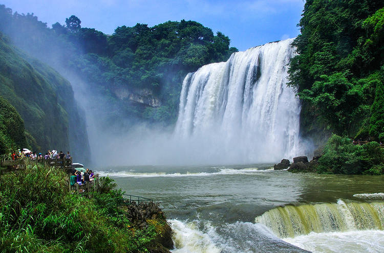 “灵山多秀色,空水共氤氲。”黄果树大瀑布高度77.8米,宽度101米。