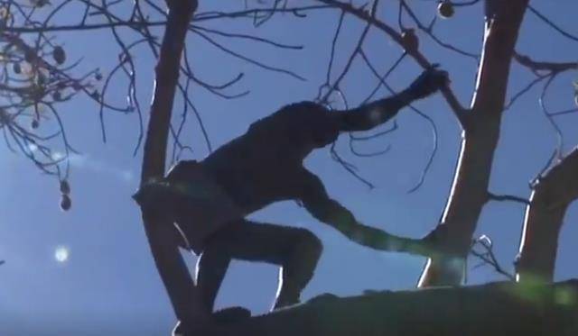 在一棵巨大的面包树上,男人们开始准备捕猎。他们把木头钉在树上当做梯子,全部都准备好了之后,首领很快的就能爬到最顶端。摇晃着这棵大树,他们就能得到一顿丰富的午餐。