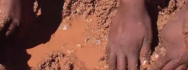 眼前这个大泥坑和我们小时候玩泥巴时的坑很像,不过这群人并不是在过家家。他们刨开泥巴,挖得越来越深,出现了很多泥水。这些泥水才是他们的目标,因为这正是这一群人每天吃饭喝水要用到的食用水。