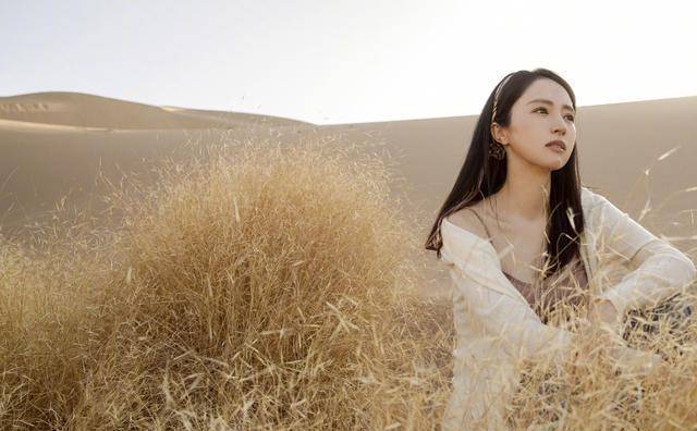 在她晒出的众多照片里,有一张是她身穿浅棕色吊带,深蓝色牛仔裤站在镜头面前,直视镜头,背景是广袤无垠的沙漠,她像是沙漠之中孤傲孑孓的狼,气质清冷。