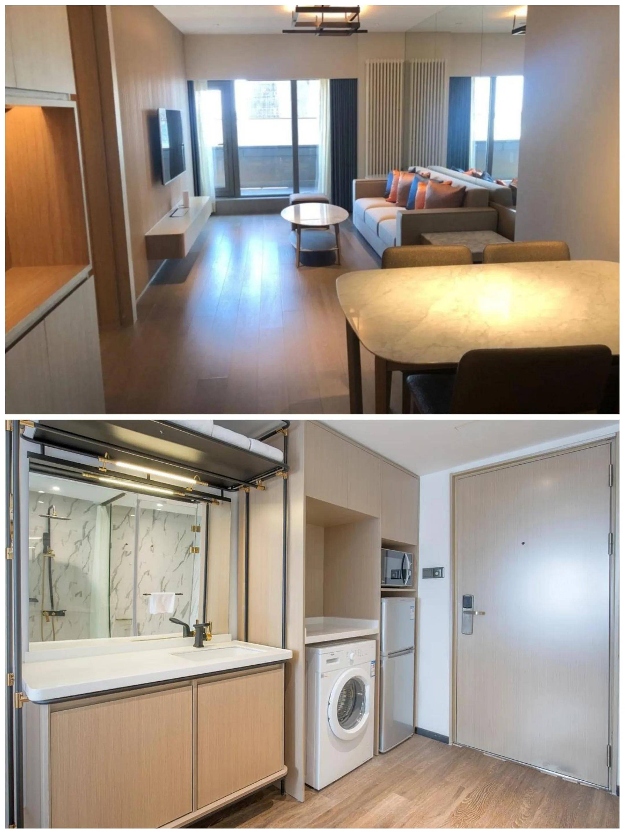 我出差经常会常驻一个地方一两个月,各式的宾馆酒店住过无数,反正老觉得每天呆在一开门就是床的屋子里非常憋屈。直到有一天我发现了酒店式公寓,住了几晚瞬间感觉舒服多了。那个时候刚刚流行酒店式公寓,房间里有洗衣机、微波炉。对我这种经常会常驻一个城市的人真是莫大的方便,自己可以用洗衣机洗衣服了!