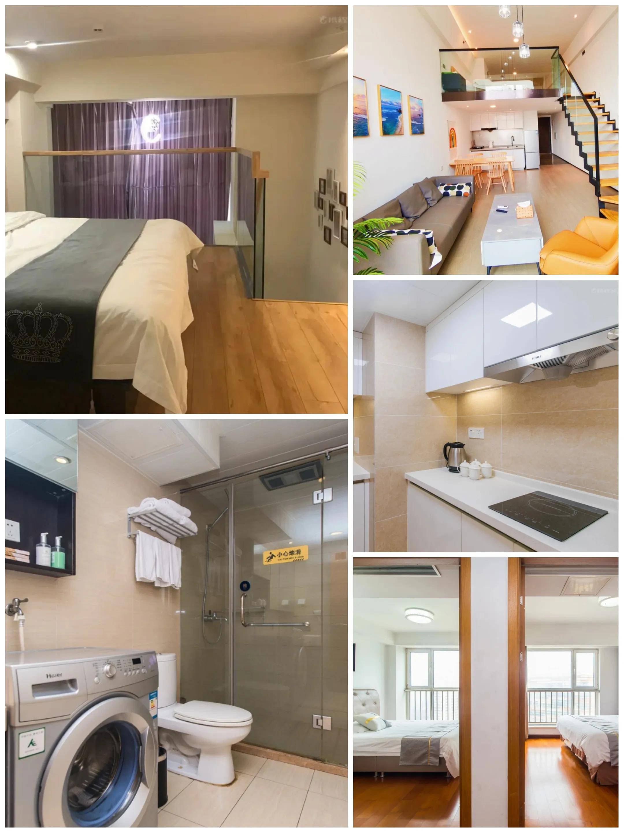 我曾经常驻了一个复式的酒店式公寓,住了2个多月。这家酒店公寓所有房间全部都是复式结构。楼下是客厅、简易式敞开厨房,二楼是卧室,上下各自单独卫生间。有冰箱、洗衣机、微波炉、电磁炉、上下两台电视机。装修干净漂亮、家具崭新时尚。一下子告别了进门就是床的宾馆客房,可把我乐坏了,那2个月住的真的是乐不思蜀。