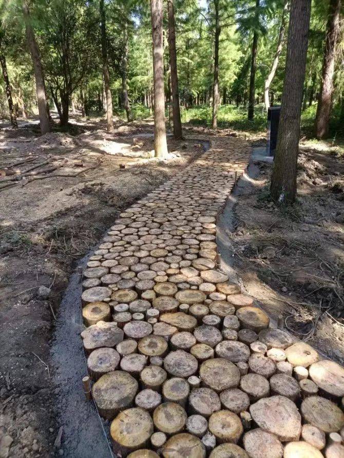 主要建设内容包括林地抚育、景观改造、基础设施及休憩设施建设等。比如,增加花灌木等提升景观,增加景观廊架、休憩座椅、石桌凳等配套设施,配备景墙、驿站、标识标牌、宣传栏等设施。其中一大亮点在于,巧用树木抚育采伐后的剩余物,铺成了一条林间小道,增加了森林野趣。