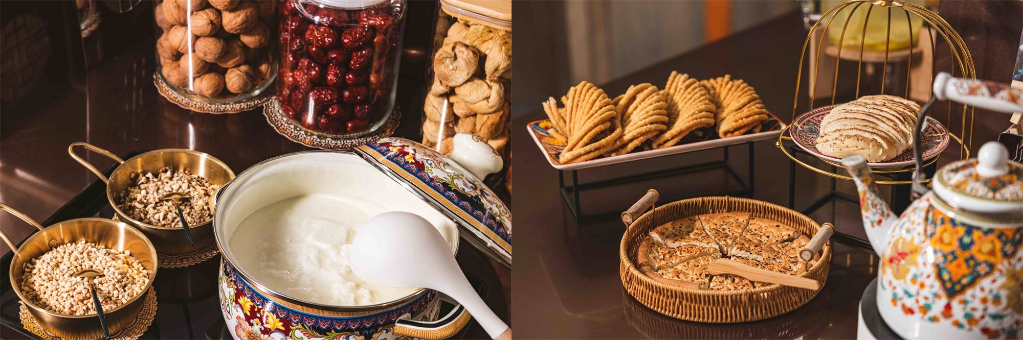 “来新疆的第一餐,居然就能在酒店感受到地域特色的风土人情。比如,将新疆酸奶子、奶茶、馓子,和各种干果融入种类丰富、制作健康和精心搭配的自助早餐,瞬间帮我们打开了新疆模式,这算是个小小的惊喜。”阿图什万达美华酒店的一位外地客人表示,来之前已经从酒店那边打听了阿图什暑期周边游特色,打算去逛逛怪柳林、奥依塔克冰川公园,还可以转到去游览喀什噶尔古城。