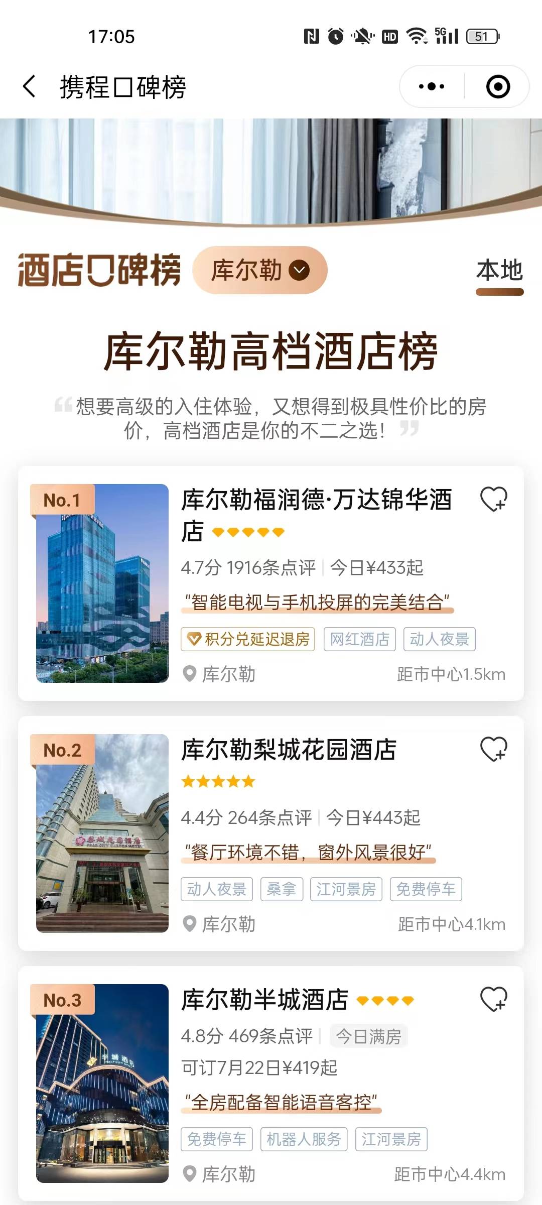 图片:库尔勒万达锦华酒店位居携程口碑榜“库尔勒高档酒店榜”TOP1