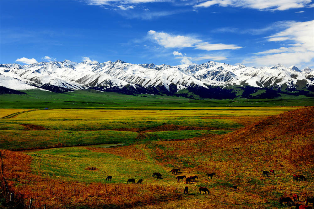 新疆,地处中国西北,位于亚欧大陆腹地,是中国陆地面积最大、交界邻国最多、陆地边界线最长的省级行政区。“三山夹二盆”的地形地貌,形成了新疆独特的自然风光——雪山、沙漠、草原、林区。新疆古称“西域”,自西汉在乌垒(今轮台县境内)设立西域都护府便正式纳入中国版图,成为祖国不可分割的一部分。新疆在历史上是古丝绸之路的重要通道,是第二座“亚欧大陆桥”的必经之地,战略位置十分重要;同时,在这里生活着56个民族,历史文化悠久且丰富多彩。据统计,新疆拥有56种全国旅游资源类型、占全国旅游资源类型的83%。