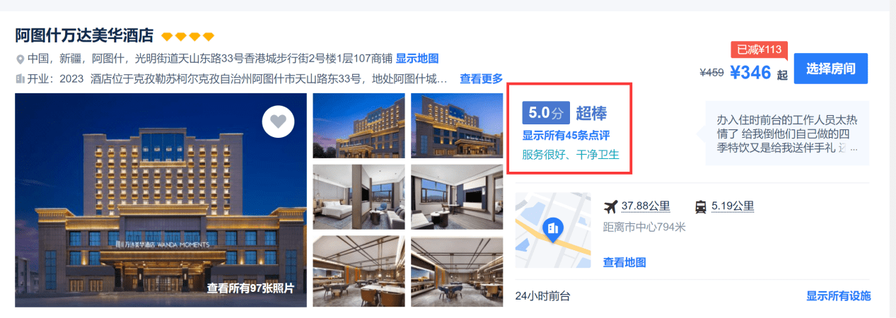 图片:阿图什万达美华酒店的携程评论为5分