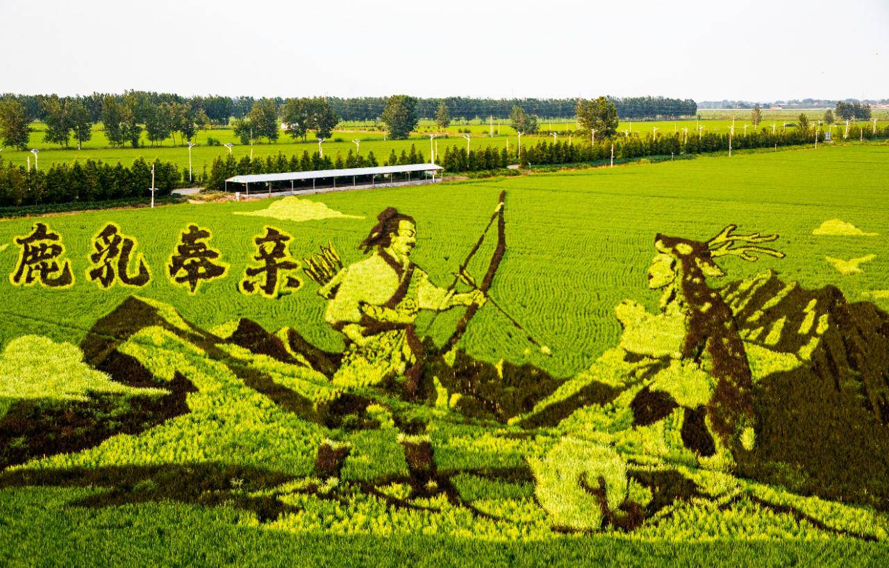 8月5日,山东省临沂市郯城县归昌乡的一幅幅“稻田画”栩栩如生,令人叹为观止。当地稻农在稻田精心“绘制”了一幅幅巨型稻田画,吸引众多游客前来参观。