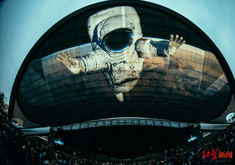 让人惊喜的是,因为采用了独特的材质,其内膜可形成超过5000平方米的光洁的沉浸式可投影天幕,这在国内都属罕见,也成为在此演出的最大亮点。
