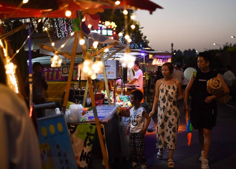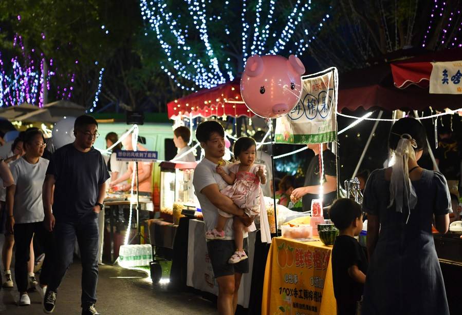 7月4日,游客在位于西安市浐灞生态区的后备箱集市游览。新华社记者 张博文 摄