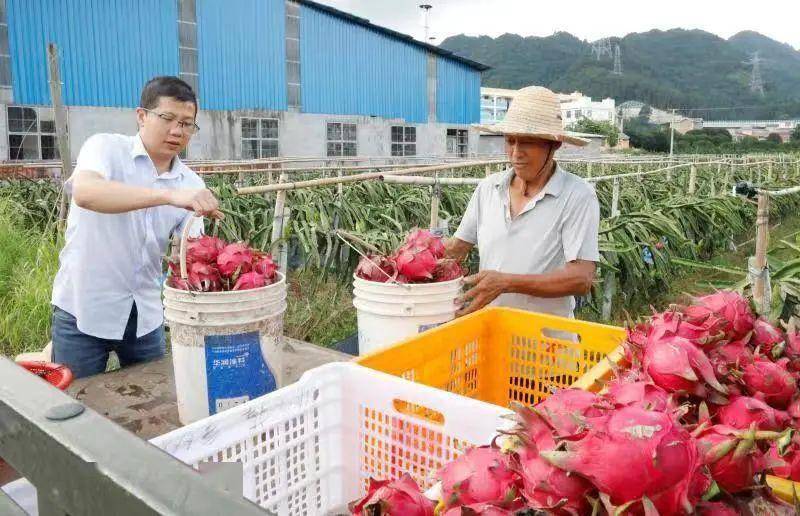 荔浦市龙怀乡新安社区村民种植的红心火龙果喜获丰收。