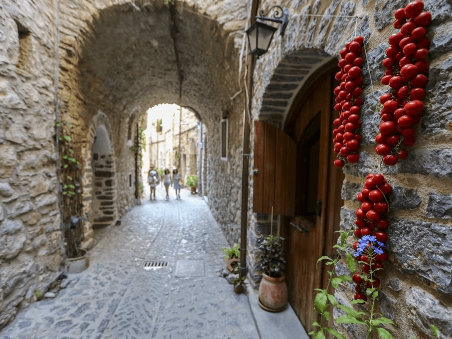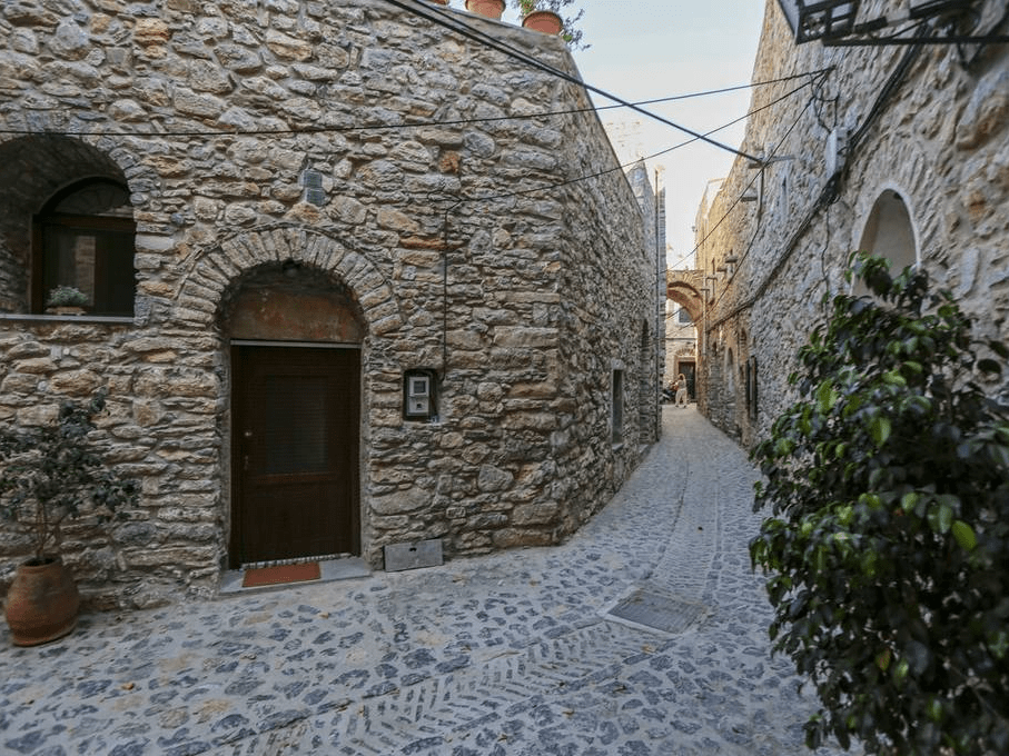希腊希俄斯岛,皮尔吉村村庄古式建筑景观,景色宜人。