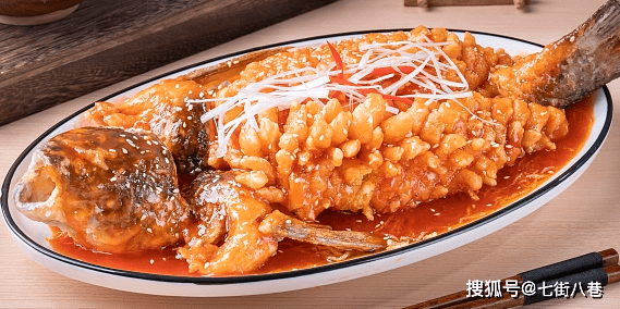 松鼠桂鱼:松鼠桂鱼是江苏的经典名菜之一,传说乾隆下江南时就已经有这道菜了,将桂鱼鱼身去骨打上花刀,蘸上面粉下锅炸至,炸过的桂鱼在盘中昂头翘尾,淋上酱汁只听鱼身吱吱作响,很像松鼠的叫声因此叫做松鼠鱼,这道菜外酥里嫩,酸甜可口,乾隆尝后赞不绝口,如今在很多中餐厅也可以看到它的身影。