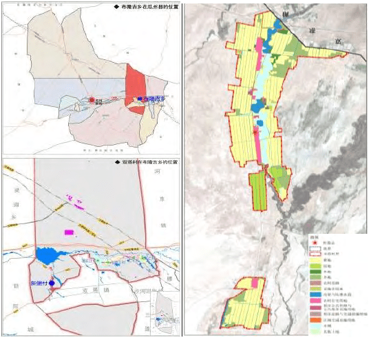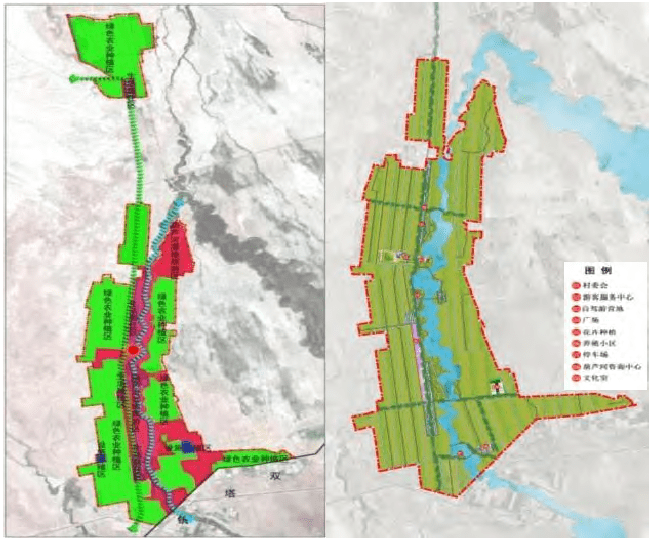(一)结合资源禀赋,科学规划乡村产业紧抓乡村振兴、大敦煌文化旅游经济圈建设等机遇,依托葫芦河自然景观风貌,规划双塔村产业空间布局结构为“一心、两轴、四区”。一心:以游客服务中心、葫芦河湿地自驾营地为中心的综合服务中心。
