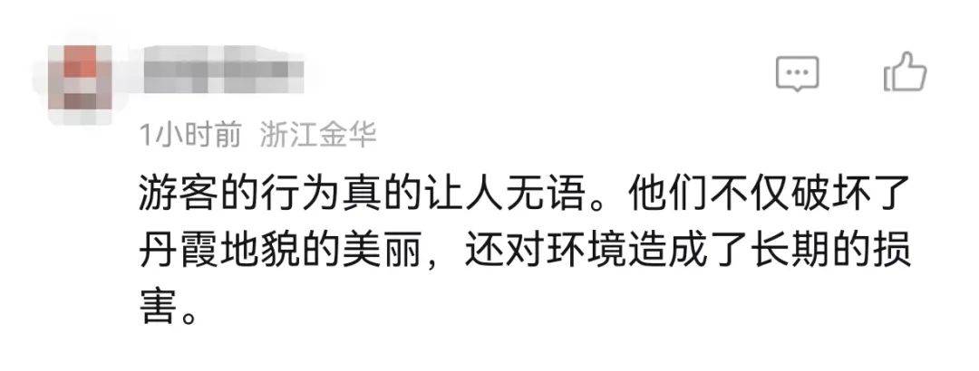 据悉,过度的人类活动会对丹霞地貌造成不可逆的伤害。曾有地质专家表示,游客留下一个脚印需要60年才能恢复。