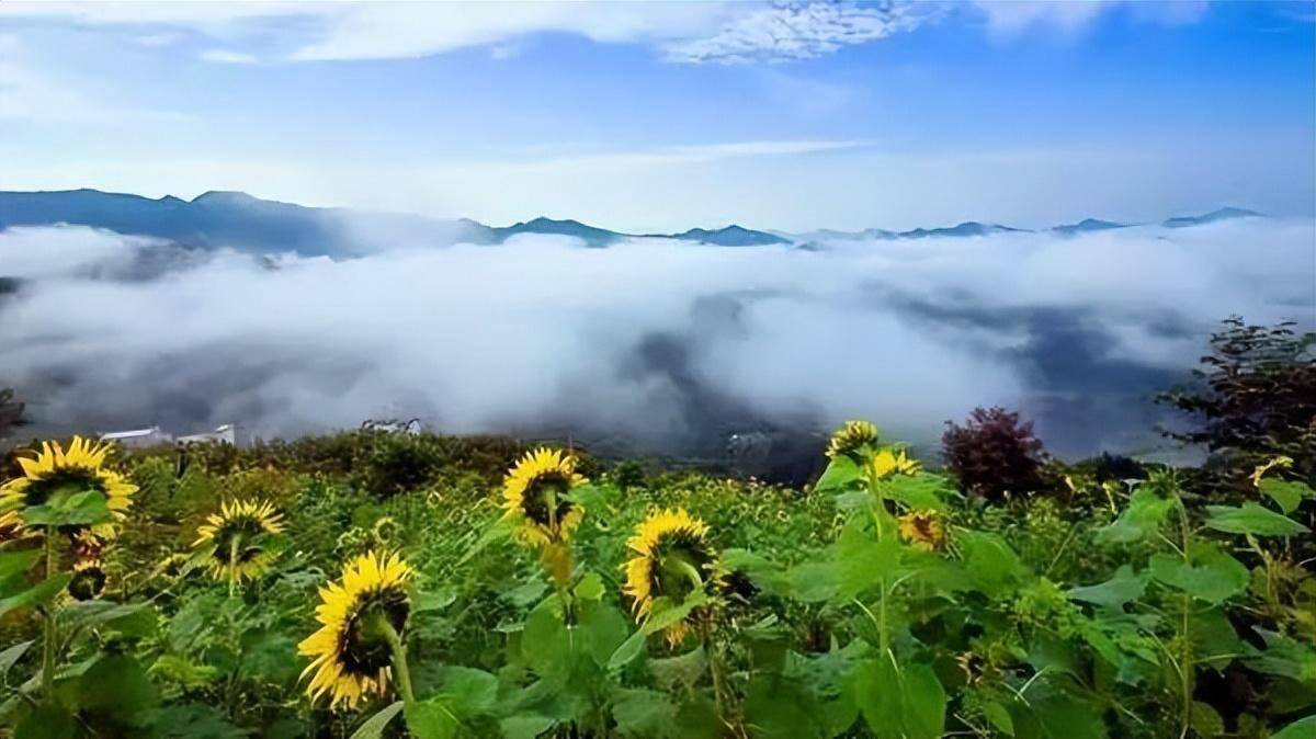 走进 坡山,放眼远眺视野极其辽阔,漫漫云海在山峰间奔涌,如银涛雪浪,或浓或淡,变幻莫测。夏季正是向日葵开放的季节,云雾缭绕中,明艳的黄色若隐若现,随时入眼都是一幅幅美景。