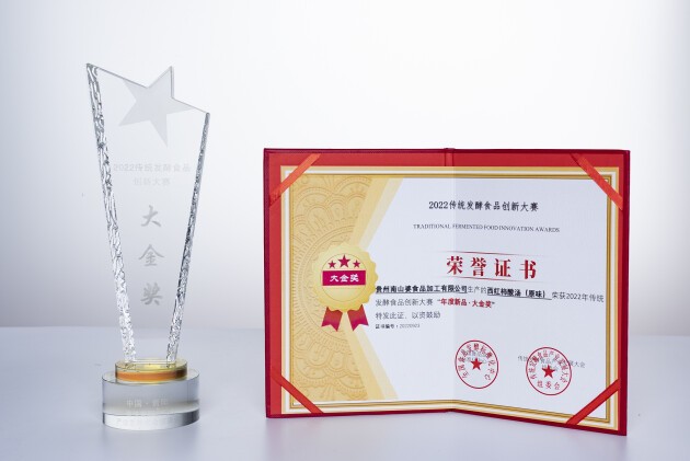 在2022年、2023年连续两届创新大赛上,南山婆酸汤系列美食产品得到评审专家高度评价,从众多参赛产品中脱颖而出,斩获多个大奖。其中,南山婆西红柿酸汤(原味)、西红柿酸汤(酸辣味)分别荣获2022年度、2023年中国传统发酵食品创新大赛最高奖项“大金奖”;南山婆酸汤粉(酸辣味)、发酵番茄酱分别荣获2022年度、2023年度中国传统发酵食品创新大赛“金奖”。