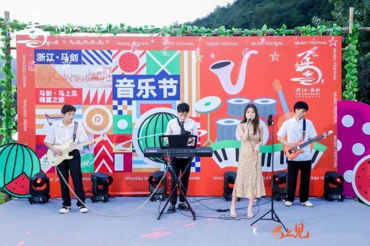 诸暨本地乐队在诸暨芳草地度假酒店草地上唱响民谣音乐会,大家在轻松愉悦的音乐中,感受到了自然乐活的美好。清凉市集设置了很多马剑当地的非遗及特色小吃,马剑馒头、马剑发糕、马剑灰汤粽,马剑特色手工艺品、马剑灯彩等,满满都是人间烟火气。现场举行了男女老幼都喜欢的吃瓜大赛、西瓜套圈等游戏,游客们还酒店里兴致勃勃地玩了卡丁车、水上乐园等,处处充满欢声笑语。