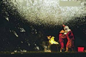 8月5日晚,云漫湖景区举行的非遗打铁花表演。(谢孟航 摄)