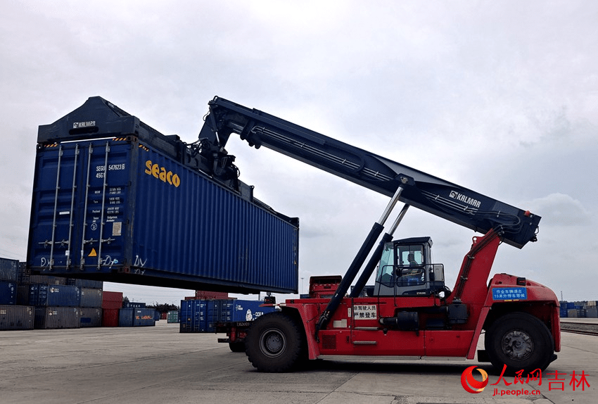中欧班列“长满欧”货运集装箱装车。(长春国际陆港公司供图)