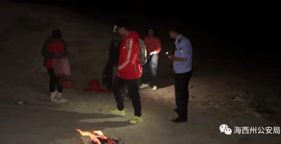 晚上9点过,茫崖虽然天色还没有完全变黑,但该无人区地势崎岖复杂,无任何参照物,加之长时间的搜寻工作,为徒步行进带来较大困难,民警生怕与游客走偏了方向。当晚10时许,救援警力找到了其中的4名成人、2名儿童,并了解到另外2人已自行去寻找315公路。救援警力当即兵分两路,一组将6名游客先行护送至车辆停放位置,另一组继续对另外2人展开寻找。