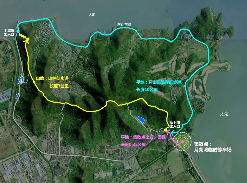 赛事线路:月亮湾临时停车场→森林步道庙下塘→千波桥出入口→环山东路→庙下塘出入口→集散点,赛事全线止。