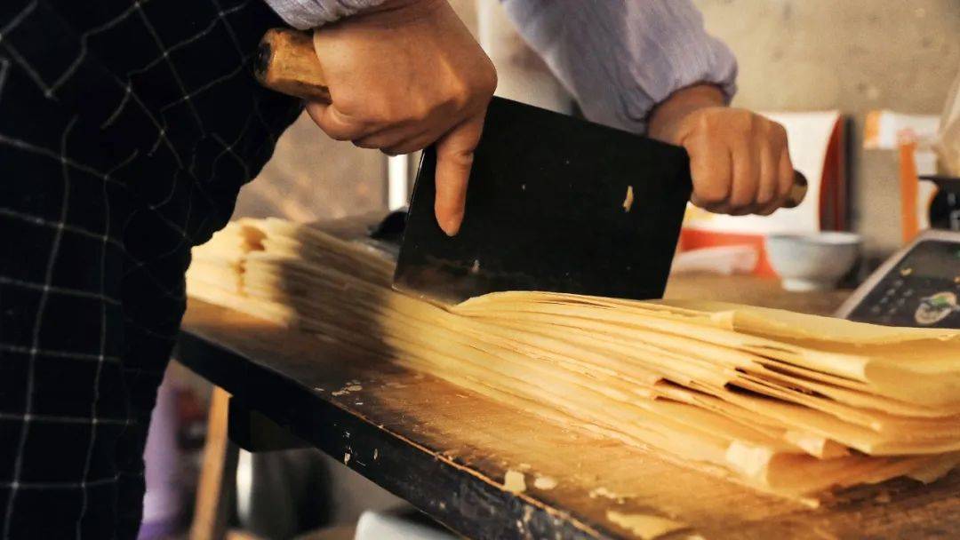 不能吃辣的小孩子也有同款配菜,可用其他食材取代辣椒,比如清炒土豆丝、大葱炒鸡蛋、芹菜炒河虾……而不论大人还是孩子,卷煎饼这件事儿都是自己动手,可选其中一样,也可每样来一勺,全看个人喜好。菜被均匀摊入掌心里那张叠成长方形的手工煎饼中,又被熟练地卷成卷儿,下端折一小块叠进去将配菜包住。卷好的煎饼卷握在手中,一口咬下去,新的一天便在熟悉的味道中铺展开来。待早餐店里那些摞得厚厚的煎饼一点点薄下来,早餐时间也慢慢过去了。