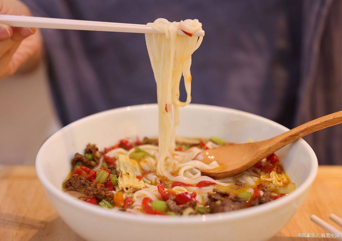 5. 湖南米粉:湖南的米粉口感韧糯,配上香辣的辣椒酱和各种配菜,是湖南人日常生活中的主食之一。