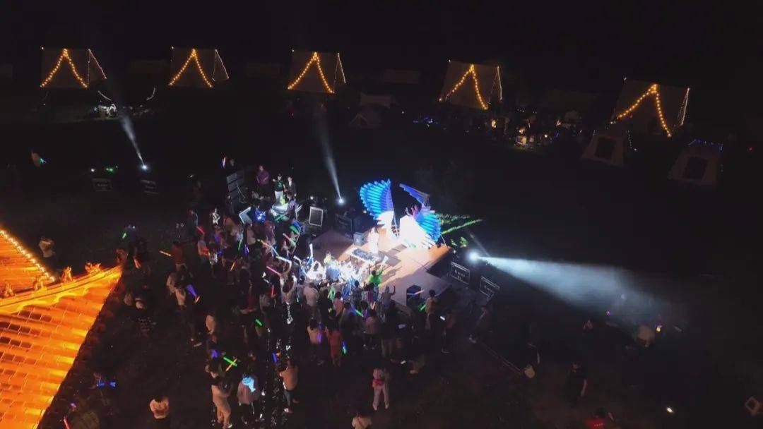 在活动分会场帐篷营地里,充满活力复古迪斯科音乐带动游客随之摇摆,排成长队的游客共跳一支活力舞蹈,在充满青春回忆的音乐中尽情享受激情时刻。