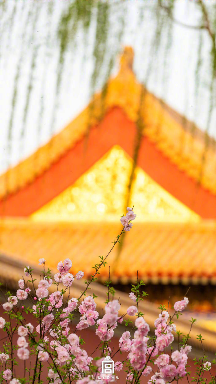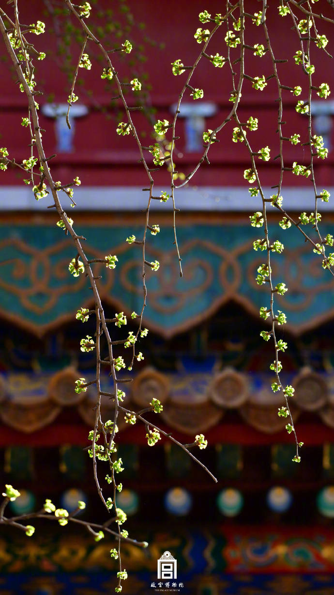 近日,北京故宫春色满园,碧水盈盈,柔风阵阵,嫩芽点点,庭廊深深。