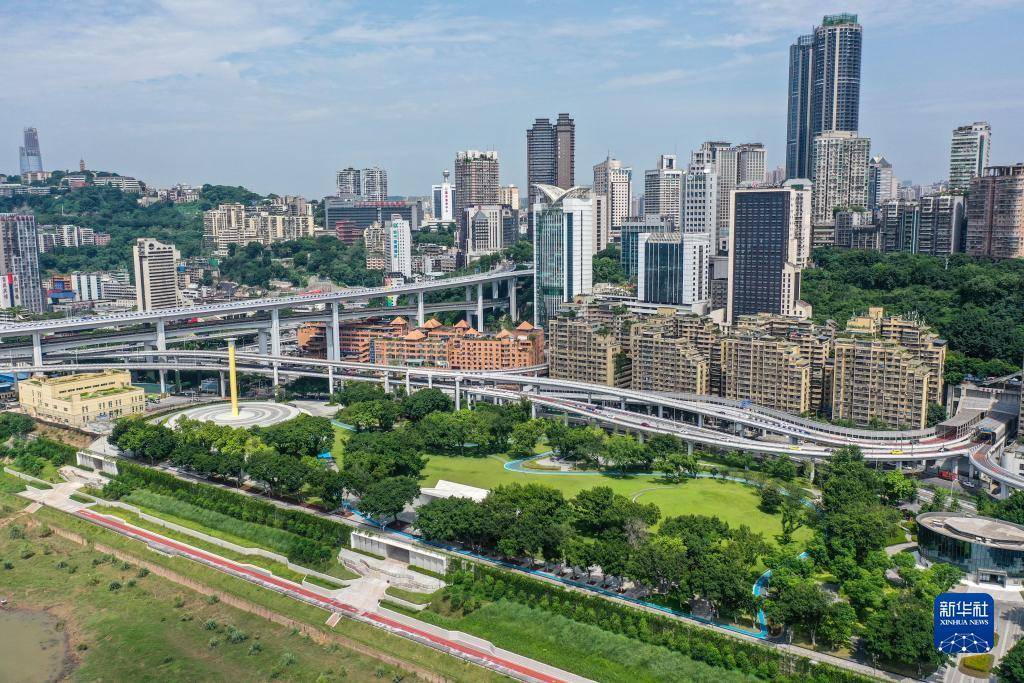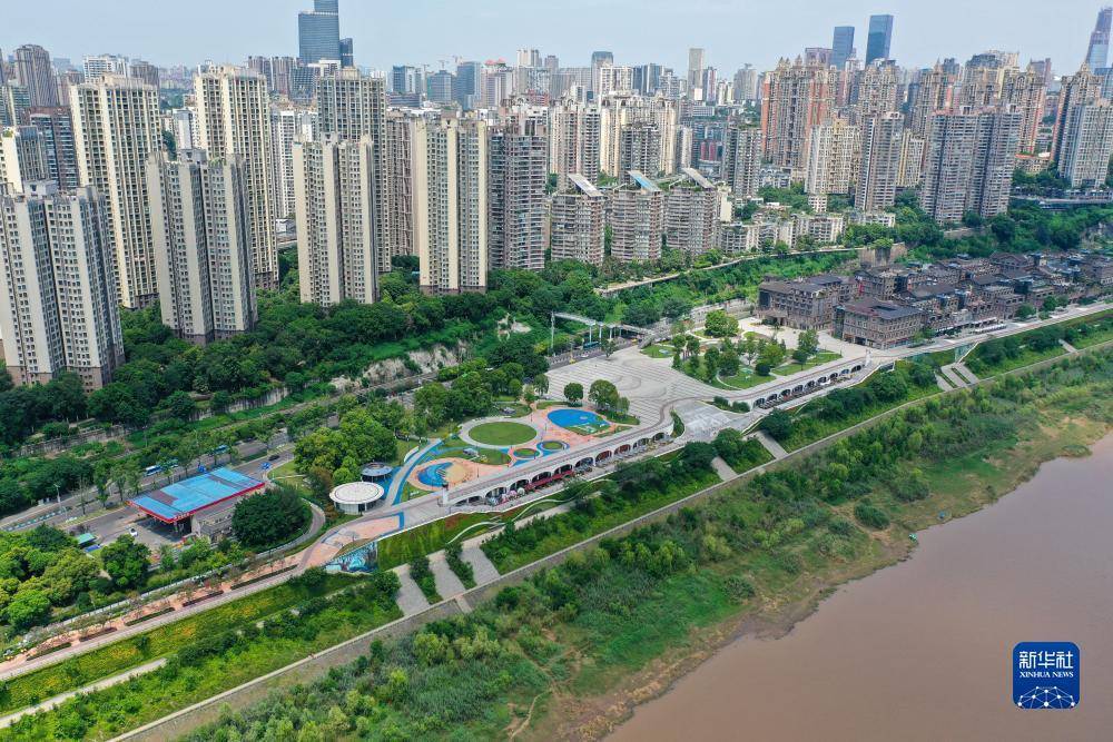 这是8月6日拍摄的位于重庆长江岸边的珊瑚公园一景(无人机照片)。新华社记者唐奕摄