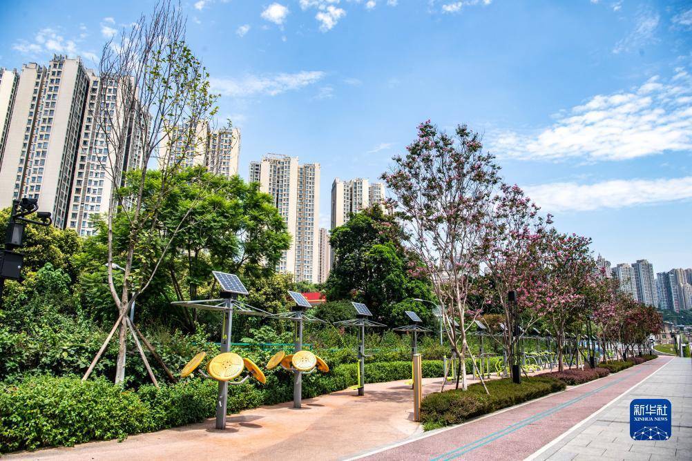 这是8月6日拍摄的位于重庆长江岸边的九龙滩公园一景。新华社记者唐奕摄
