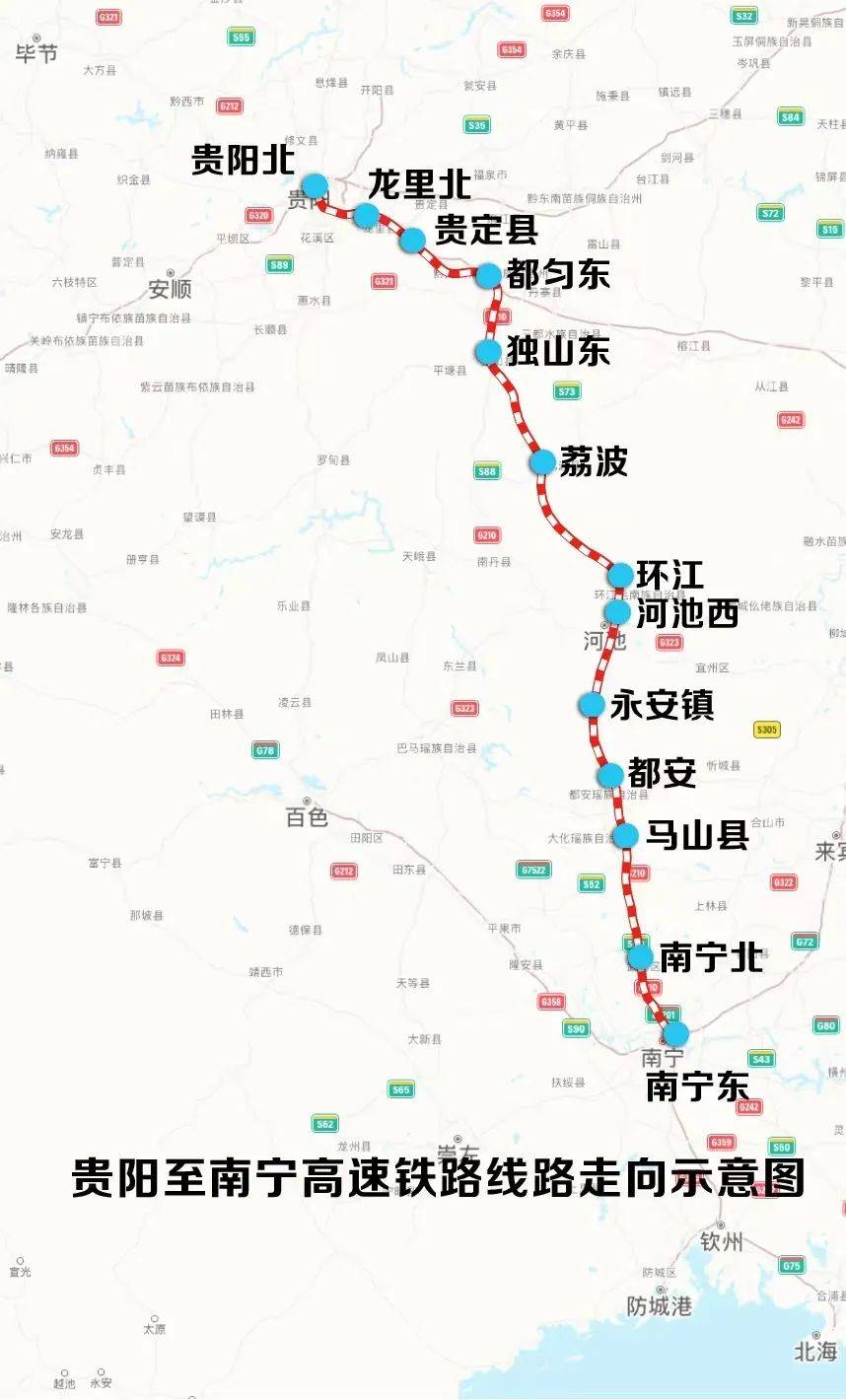 贵南高铁是我国“八纵八横”高速铁路网包头(银川)至海口通道的重要组成部分,新建线路全长482公里,设计时速350公里。此次开通的贵荔段长约200余公里,其中龙里北站至荔波站为新建线路,长175公里,设龙里北、贵定县、都匀东、独山东、荔波5座车站,前3站为改扩建车站,后2站为新建车站。