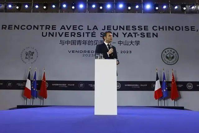 在中法建交六十周年到来之际,日前,应德国总理朔尔茨、法国政府邀请,中国国务院总理李强于6月18日至23日对德国进行正式访问并举行第七轮中德政府磋商、对法国进行正式访问并出席新全球融资契约峰会。李强总理上任后首次出访即选择法国,体现了中方对中法关系的高度重视。李总理访法期间围绕落实两国元首共识,并着眼明年中法建交60周年,就全面深化两国各领域交流合作,同法方深入沟通。中法作为联合国安理会常任理事国和负责任大国,在维护多边主义、推动国际合作、应对全球性挑战方面发挥着重要作用。中方也表期待同包括法国在内的各方一道努力,为推动全球发展更加公平更可持续作出积极贡献。▲ 2023年4月7日下午,法国总统马克龙抵达广州中山大学并在中山大学体育馆发表演讲。