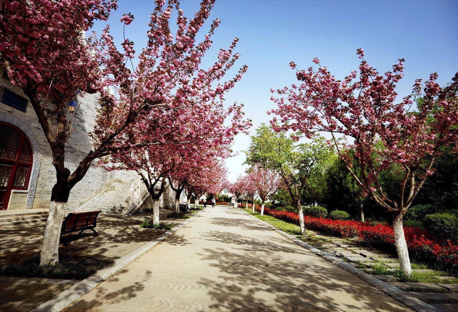 走进太极源文化景区金台观古建筑群,近距离参观了兼有黄土高原气息及民族特色的窑洞式古建筑群。漫步金台书院,抚摸沧桑古树,眺望宝鸡市景,感受太极传统文化。景区位于宝鸡市区北坡塬上,南距火车站0.5公里,始建于元末明初。古时民间曾有“宝鸡有个金台观,离天只有五尺半”的说法,言其观之高,若居高远望,景象绝佳。樱花红陌上,林间探花娇,近日景区内樱花如约盛开,分外娇艳,漫天飞舞,为春日里的金台观更增一分美景。