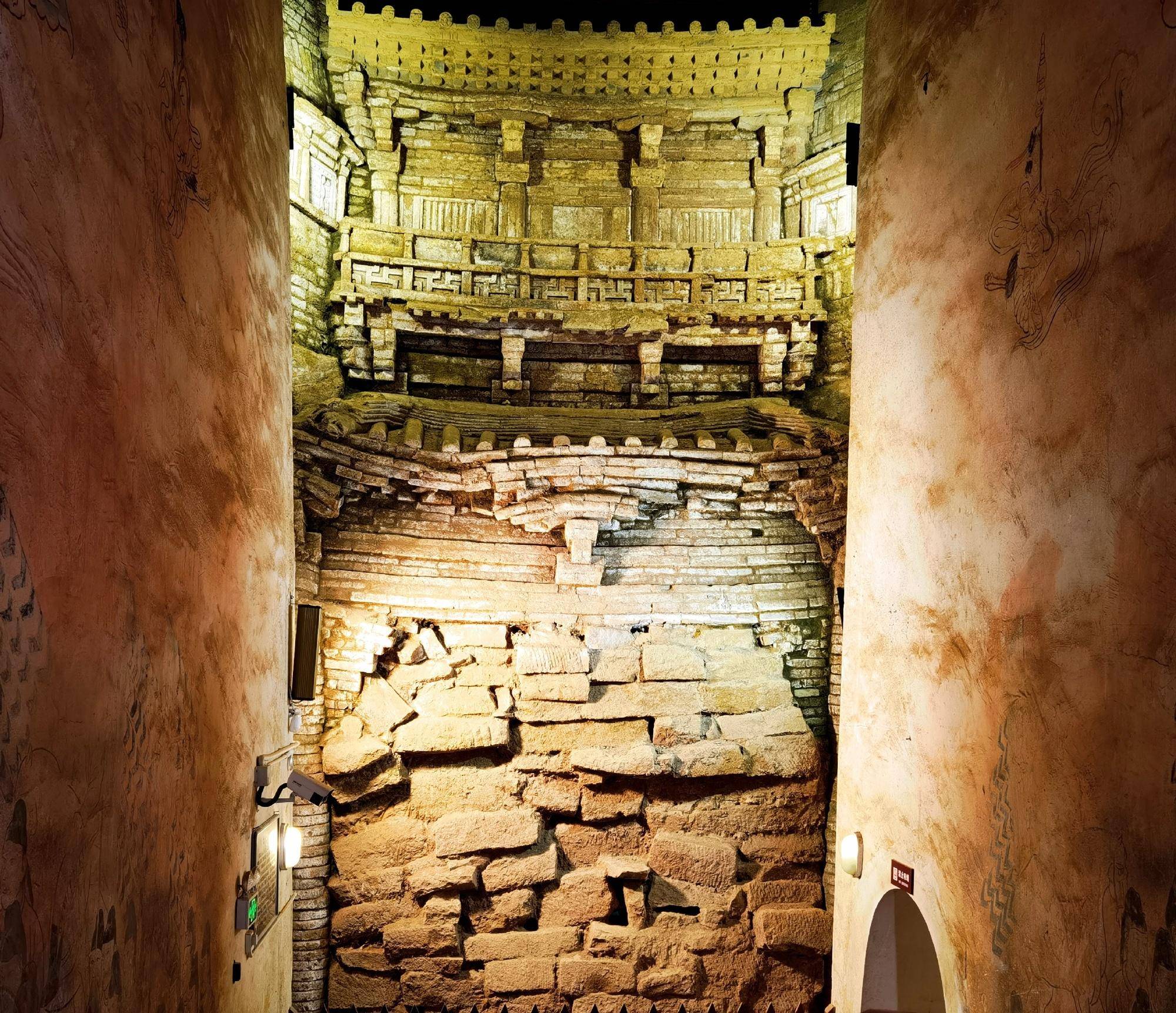 大唐秦王陵位于宝鸡市金台区陵原村东部。这里原称北原,自有秦王陵后,人们逐渐改称为陵原。其南距宝鸡市区2.5公里,东距西安市有180公里的车程。大唐秦王陵是唐末秦王李茂贞及夫人刘氏“同茔不同穴”的合葬陵寝。由山门、神道、献殿、祀殿和两座地宫组成。在刘氏地宫中,有高8米、宽4米用青砖仿木雕而建的砖雕飞檐端楼,保存完整,是全国唯一的唐代古建筑遗存。