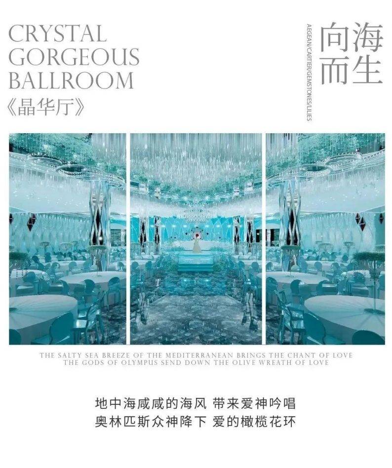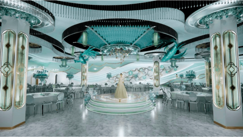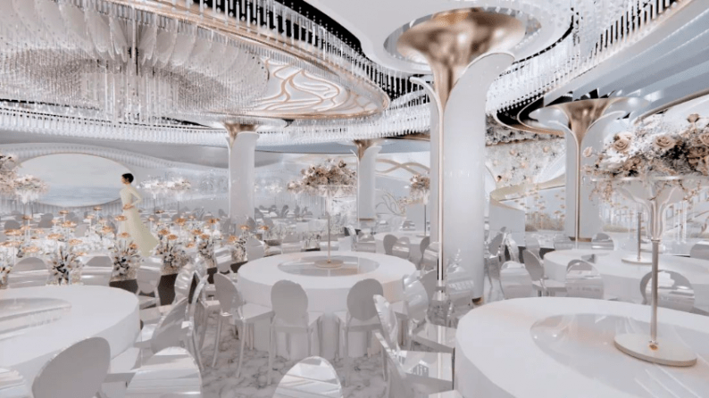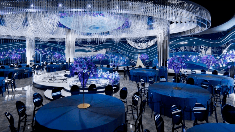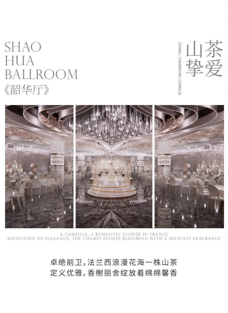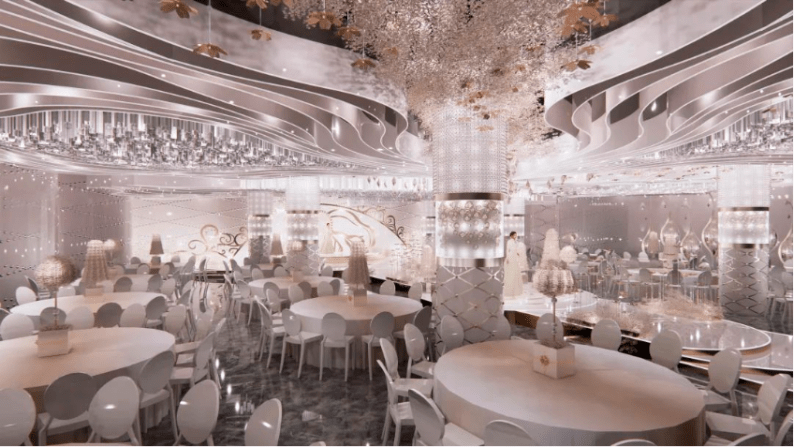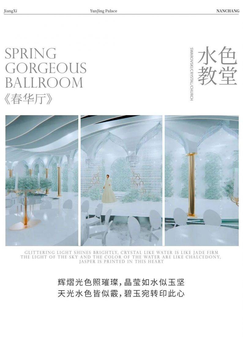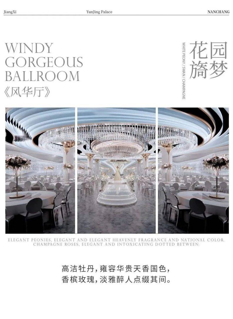 拥有顶级裸眼3D全息厅、欧式皇家主题厅、静谧星空主题厅、奇幻森系主题厅、浪漫花海主题厅、中式古韵喜庆厅、多功能会议厅等30多个不同风格的主题宴会厅,结合北面和东面湿地公园风光带,打造网红拍摄基地,打造南昌市地标性建筑,成为江西省潮流一站式主题婚宴中心。
