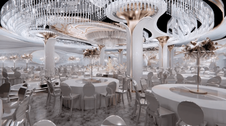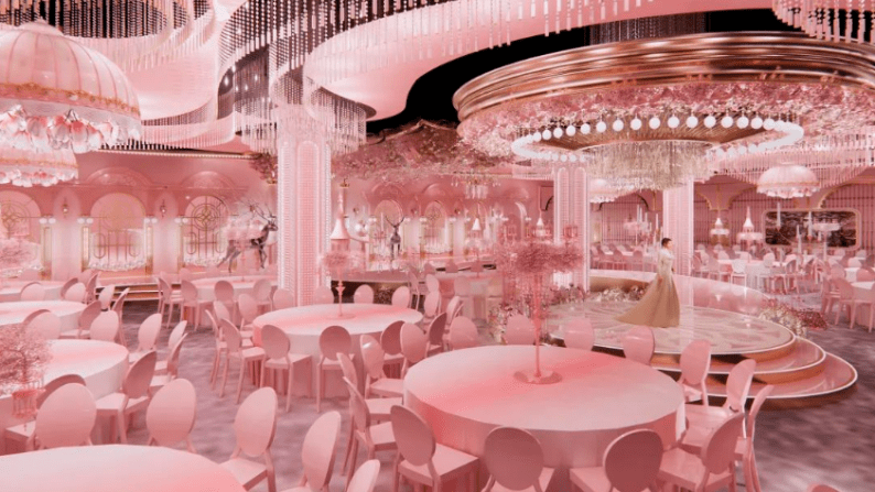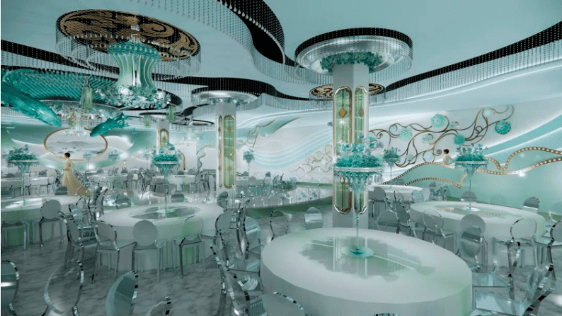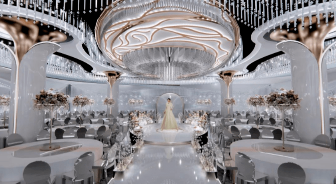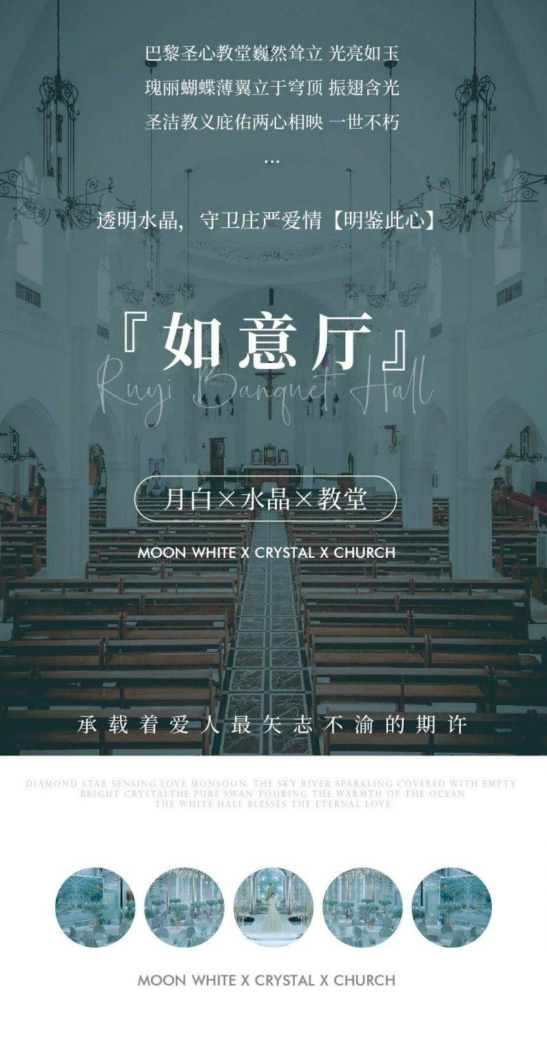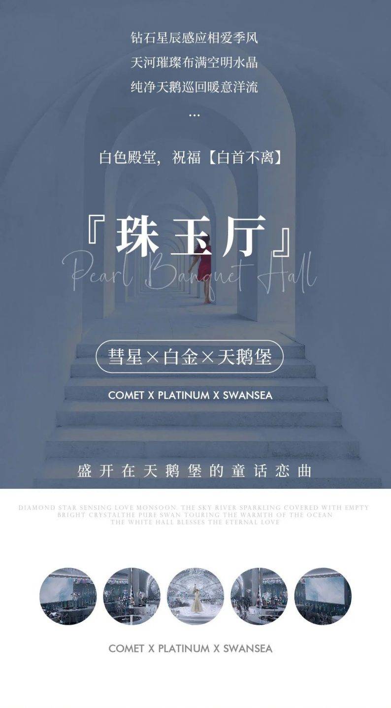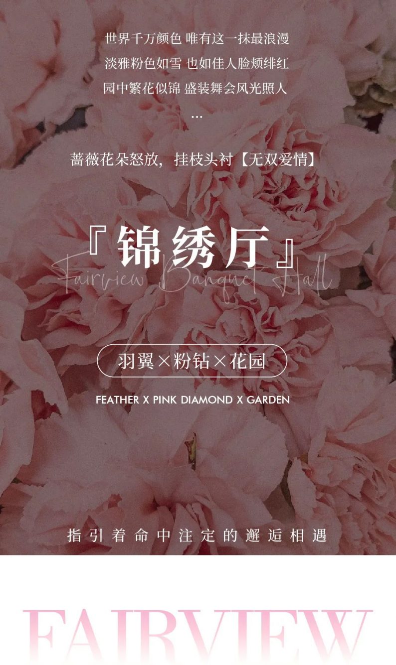 拥有顶级裸眼3D全息厅、欧式皇家主题厅、静谧星空主题厅、奇幻森系主题厅、浪漫花海主题厅、中式古韵喜庆厅、多功能会议厅等30多个不同风格的主题宴会厅,结合北面和东面湿地公园风光带,打造网红拍摄基地,打造南昌市地标性建筑,成为江西省潮流一站式主题婚宴中心。