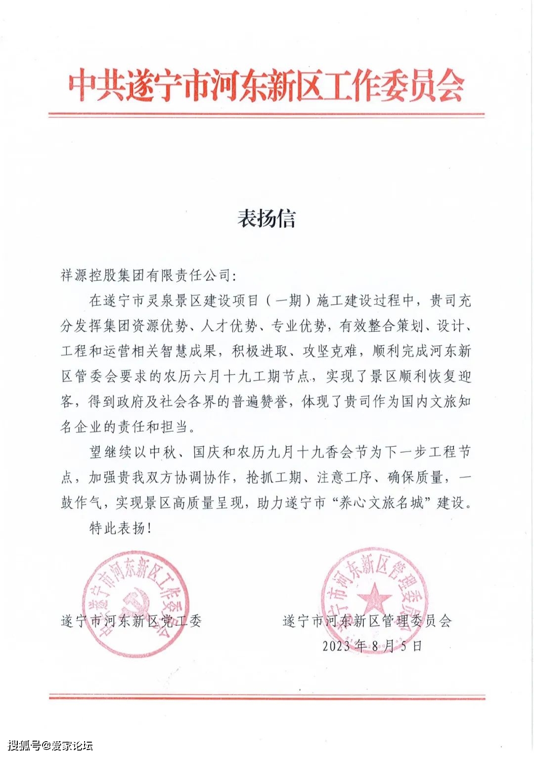 灵泉景区从2023年2月由祥源控股集团旗下建设板块专业公司祥源建设承建,有效整合投资、策划、设计、建设和运营专业条线,并与当地政府、项目业主等多单位密切合作形成合力,历时近半年封闭施工,顺利完成景区西入口片区改造提升,实现景区农历六月十九香会节恢复迎客,其“祥源速度”“祥源质量”“祥源创意”,均得到当地政府及社会各界普遍赞誉。遂宁市河东新区党工委书记夏海荣说:“灵泉景区西入口片区建设,体现了祥源控股集团作为国内知名文化旅游领军企业的专业能力和责任担当!”