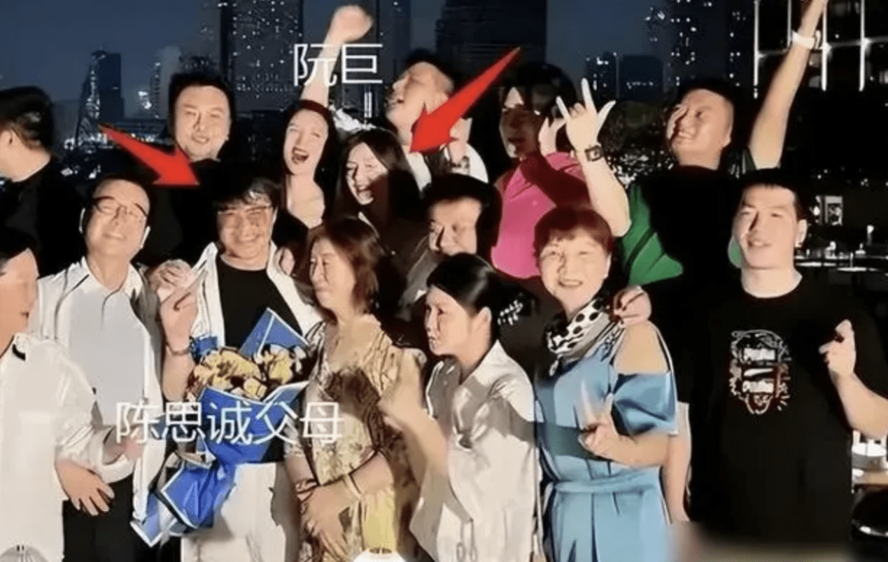 合照中陈思诚和父母站在一起,而阮巨则乖乖地站在陈思诚背后,这一幕看上去十分温馨。