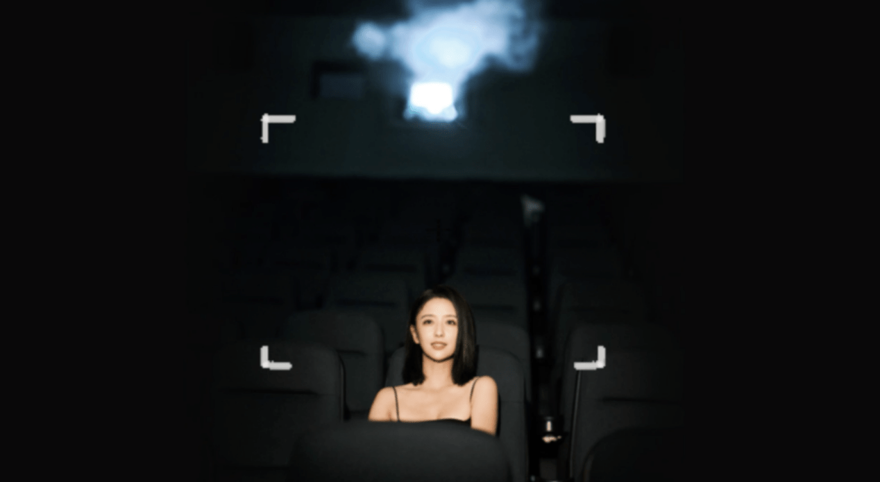 可以看出佟丽娅拍摄的地方是一个昏暗的电影院,不知道是不是为了以此祝贺前几日陈思诚电影票房大卖。