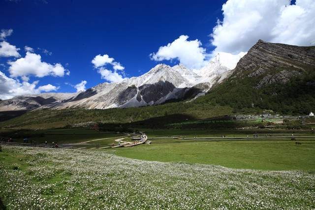 稻城,被誉为"香格里拉的最后一片净土"。它拥有世界上海拔最高的森林草甸。稻城亚丁被茫茫雪山环绕,湖泊碧蓝如玉,花草繁盛,景色极为壮丽。每年夏天,成千上万朝圣者和旅游者涌向稻城亚丁,欣赏那里独特的高山草甸景观。