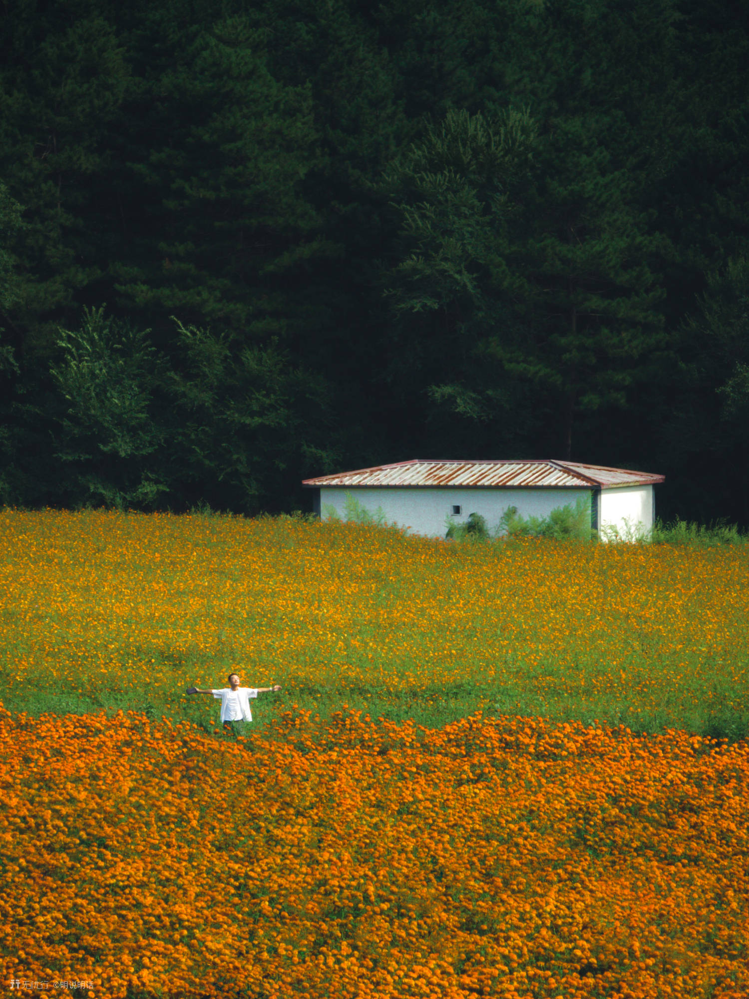 每年初秋,延庆四海镇的四季花海都会成为北京的秋季限定。除了常见的串儿红,还有大片的万寿菊和向日葵,更是有市区少见的粉色柳叶马鞭草和醉蝶花。