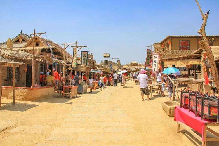 青城外形似个大乌龟,内设瓮城,有两道城门。现内有影视一条街,还有民间、民俗陈列、表演筹,在这里也拍摄了不少电视剧。