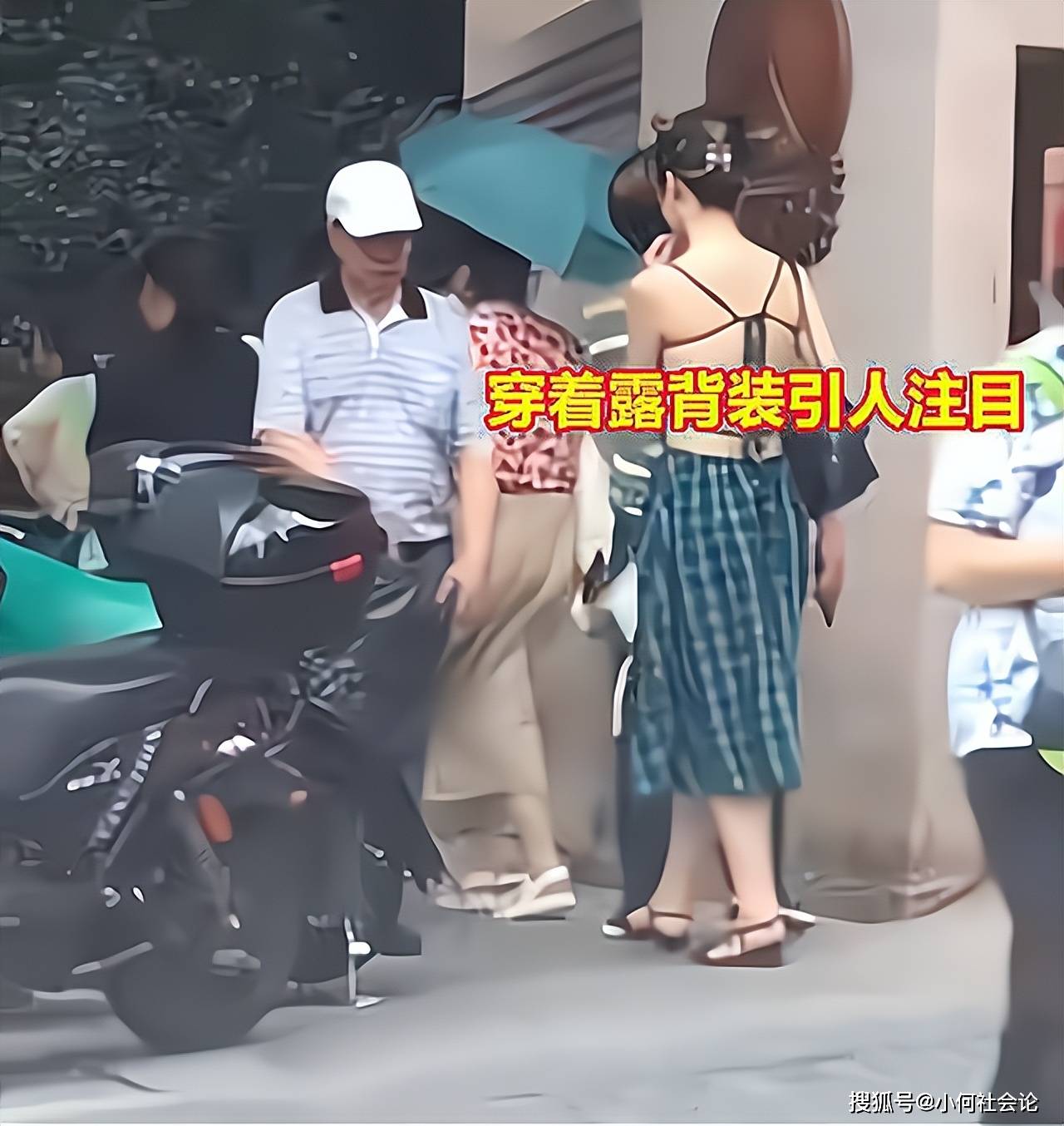 由于衣服太过清凉,她一来到寺院门口就立马引起了很多游客的关注,其中还包括不少孩子。