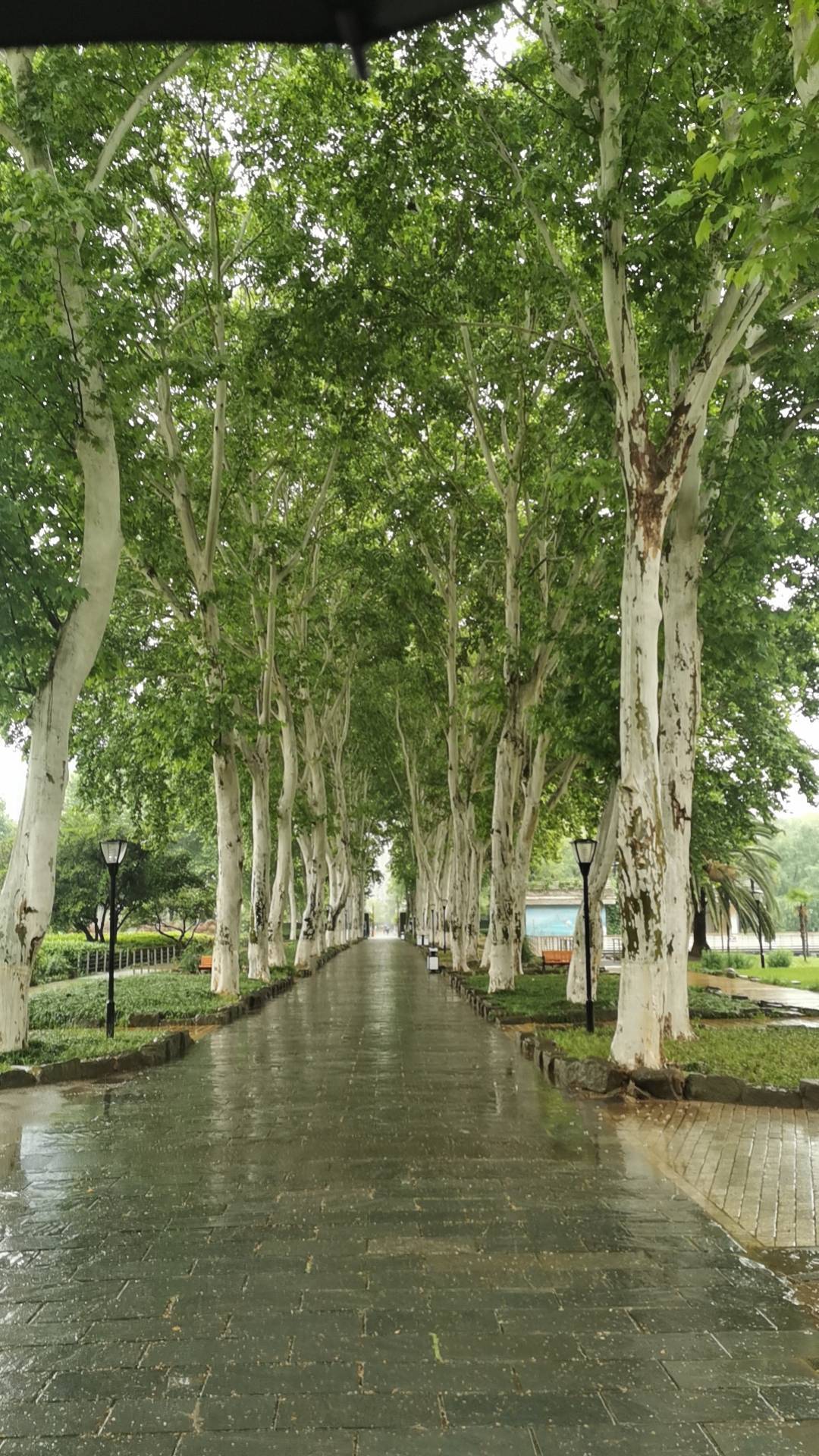 (朱老师给游客看的雨季梧桐大道)