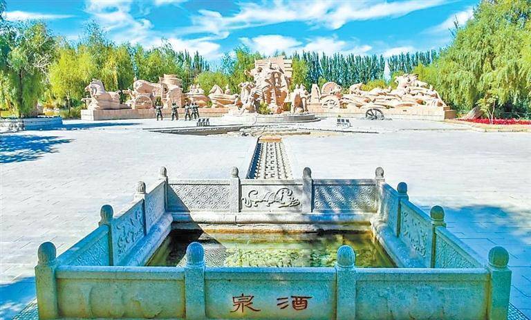 酒泉西汉胜迹:酒泉西汉胜迹又称酒泉公园,或泉湖公园,因园中有酒泉而得名。景区占地面积27万平方米,其中天然湖泊5万平方米。是河西走廊唯一保存完整的一座汉代园林,迄今已有2000多年的历史。西汉酒泉胜迹是一座源于西汉史实、表现大汉雄风、融合江南灵秀的古典园林。景区内主要历史名胜有:汉古酒泉、左公柳、泉湖及大量园林古建筑群,是一个园林型文化公园。园内有清代的“西汉酒泉胜迹”和“汉酒泉古郡”石碑,及左宗棠手书“大地醍醐”匾额,而且有一批具有现代韵味的景点——水榭古舫、月洞金珠、烟云深处、月湖假山等,游人入园,如在画中行。