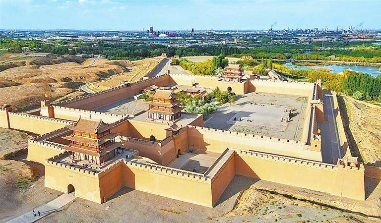 嘉峪关关城:关城位于古代“丝绸之路”的必经之地,古有“西襟锁钥”之称。关城之上的各式建筑与附近的长城、城台、城壕、烽燧等设施构成了严密的军事防御体系,被誉为“天下第一雄关”,1987年被列入世界文化遗产目录。